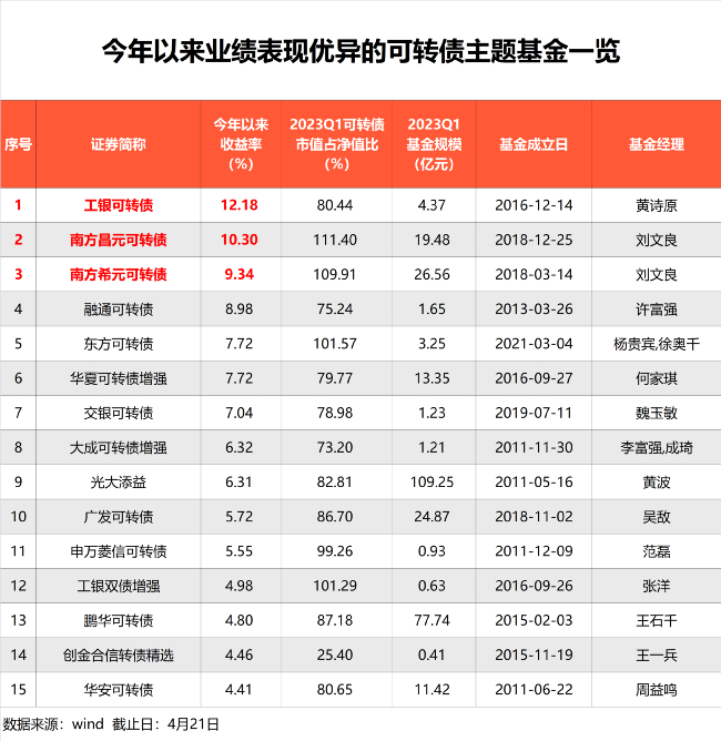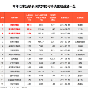 从各家产品来看,目前工银可转债今年已经大赚12.18%,南方昌元可转债年内收益率也超过10%,该类产品去年末和今年一季末持有可转债市值比例都超过80%,为今年基金净值的走强打下了基础。