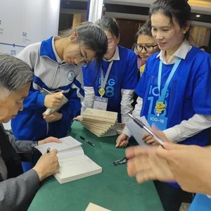 杨焕明现场为高中生代表赠书,希望生命科学的知识和精神能在青年一辈中传承下去,更祝愿青年学子能够勇担学科未来的使命,为生命科学的发展注入新的活力。