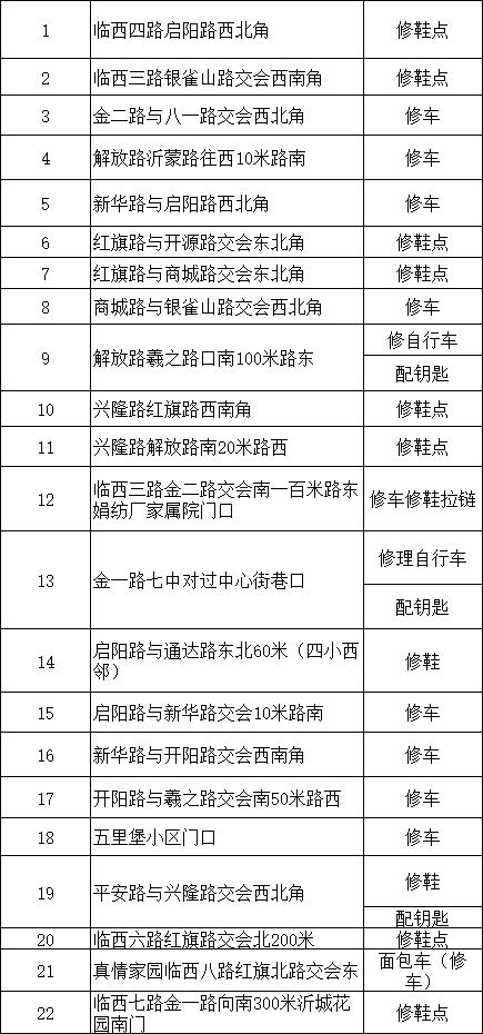 修鞋摊、修车摊、配钥匙摊……
