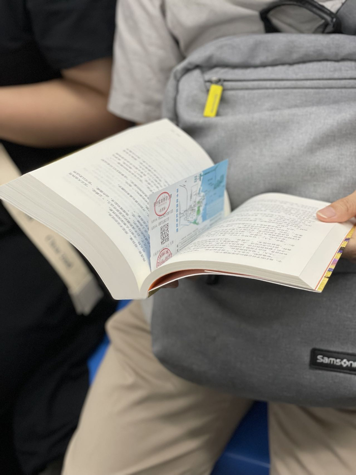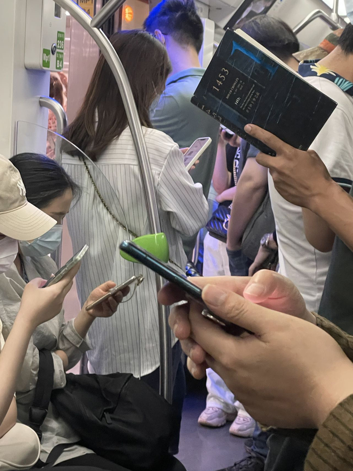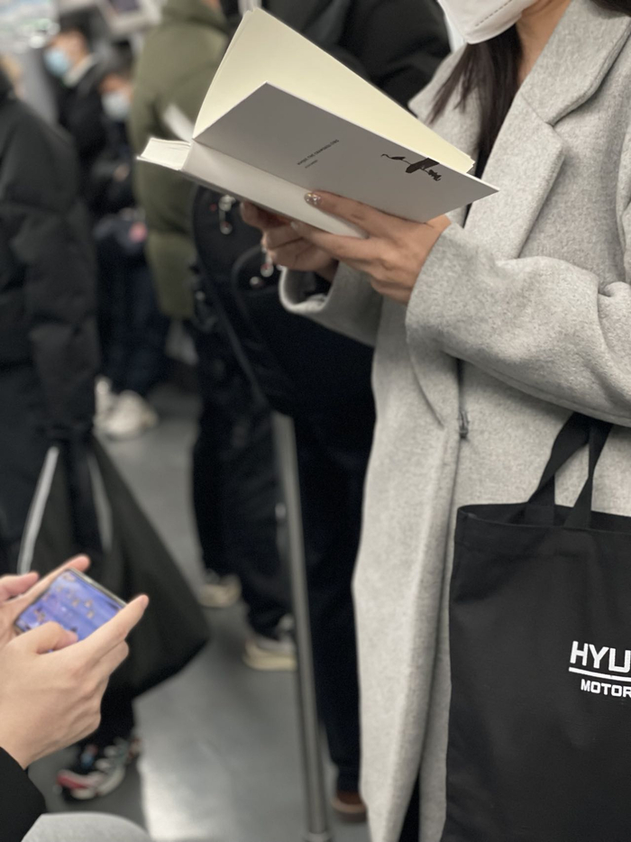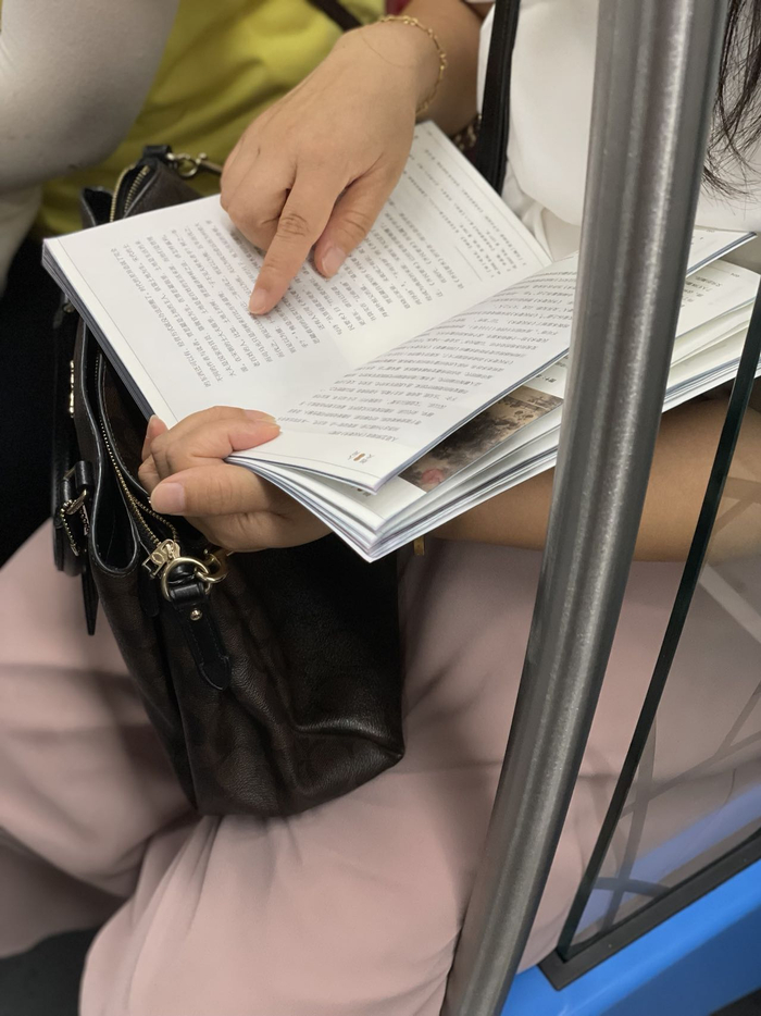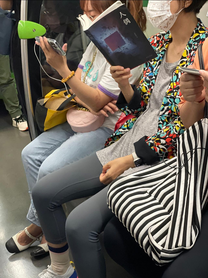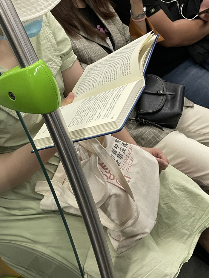 当一个人很想读一本书,TA读书的姿态、地点、文种、环境是不拘的。除了在宽适的车厢里看书,在拥挤的人潮中看书,他们也在扶梯上看书,在直梯里看书。出站时看书,甚至出站后走路也看书。他们读外文书,读从图书馆里借来的书,读三十年前出版的旧书,也读最新上市的书。他们读厚厚的书,也一本接一本地读大套书。循着兴趣的指引,他们甚至会把没有几个人读的小众书带上地铁。