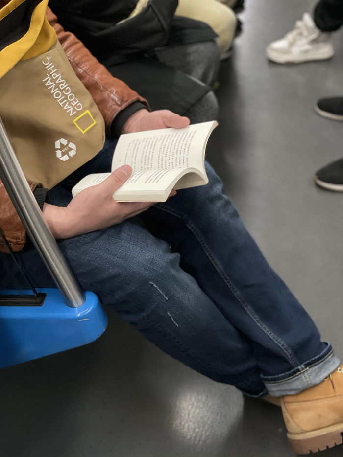 20230303。是遇到过的人,他背的国家地理包告诉我的。今天他读的是杜拉斯的《情人》,上次见他是2月17日,那天他读《一九八四》。半个月过去了,仿佛旁观了他这段时间的精神旅行。