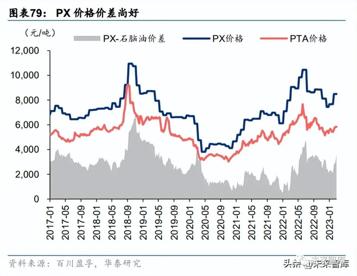 另一方面,烯烃及衍生物仍显低迷,22H2 国内乙烯石脑油裂解价差持续回落,据百川盈孚, 1 月 20 日一度下行至 464 元/吨的历史低点。3 月 31 日修复至 2290 元/吨,但仍处于 2016 年以来低位。乙二醇、丙烯、苯乙烯等有机原料价格亦处于低位,仅丁二烯价格自 22 年 12 月 2 日大反弹,3 月 31 日报价 8650 元/吨,反弹幅度达 35%。相应的下游聚乙烯、聚丙烯 价格亦处于弱势,3 月 31 日 LDPE/PP/ABS/PS 报价分别为 9250/7725/11500/10018 元/ 吨,23 年初以来分别变动+1.1%/-1.2%/-2.6%/-0.2%。弱势运行态势未见改善。