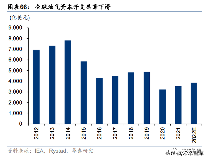 供给端而言 2015 年以来全球油气资本开支显著下滑,2020 年更是进一步下台阶,新能源 的威胁下产油国协同欲盖弥彰,OPEC-10 及 OPEC+19 自 2021 年以来持续保持着超额减 产的行为。另一方面,由于俄罗斯自 2 月 5 日起受到欧盟及 G7 对于成品油的制裁,而俄 罗斯对限价令国家进行反制,预计其原油+成品油出口量仍将承压。叠加 2022 年伊拉克、 科威特、利比亚、沙特阿拉伯及阿曼等主力产油国的财政盈亏平衡油价亦处于 70-85 美元/ 桶,结合 OPEC+成员国自 23 年 5 月至年底的自愿性减产,我们认为当前的油价水平已基 本进入中期底部区间,中枢油价的下行空间较小。预计 23-25 年布伦特平均油价分别为 82/95/100 美元/桶。