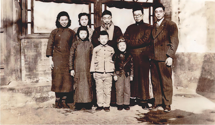 陈垣与柴刘两家人合影,前排左起:柴令文(柴德赓女)、柴邦衡(柴德赓次子)、柴君衡(柴德赓三子);后排左起刘乃和(时为辅仁大学历史研究所研究生)、陈璧子、陈垣、柴德赓、刘乃崇(时为辅仁大学国文系学生)。