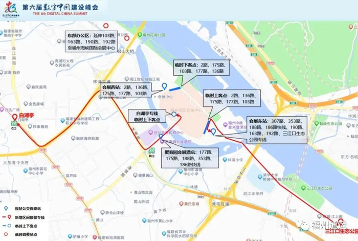 (2)可乘坐三江口生态公园—公交海峡国际会展中心东站区间专线,从三江口生态公园出发沿着南江滨东大道、浦下洲路、会展东路至公交海峡国际会展中心东站。