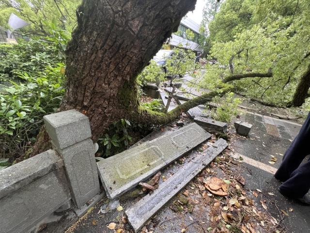 今天(4月23日)上午,有读者向潮新闻报料:西湖边的杭州市青少年活动中心南门口,一棵树龄500年樟树被车撞断了。