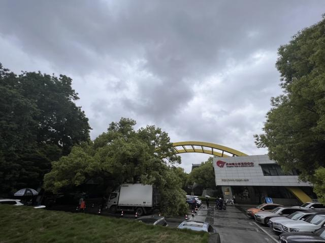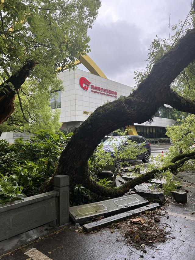 杭州少年宫门口,500年树龄樟树次枝被车撞断,古树保护引发关注