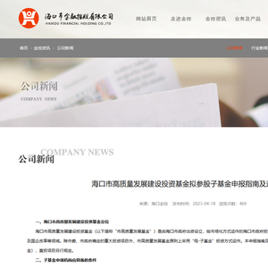市高质量发展基金管理公司按照投资规划和业务需要,面向社会发布市高质量发展基金申报指南及遴选办法,请申请机构登陆海口市金融控股有限公司官网(http://hksjkjt.com/),自助下载或电话咨询0898-68560319。