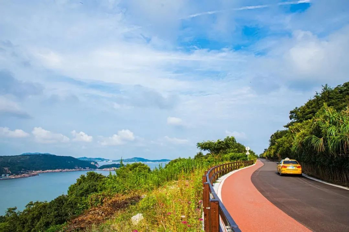 一侧是山,另一侧是海,公路沿途设置了线路指示牌,部分路段还铺设了彩色沥青,最适合周末兜风、骑行,乘着风放飞心情。