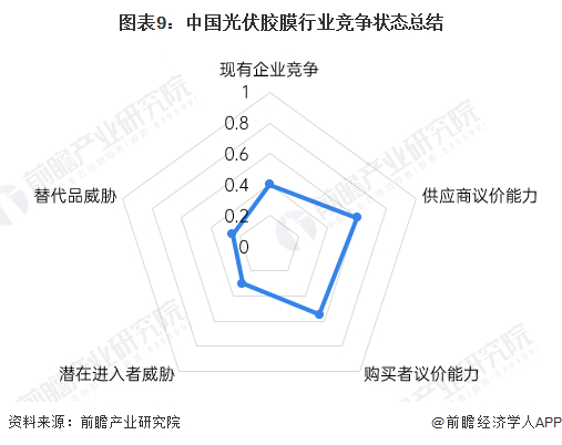 从五力竞争模型角度分析,光伏封装用胶膜生产过程中所需要原材料主要为EVA树脂和POE树脂,原材料成本占光伏胶膜主成本的比例较高,其市场价格具有波动性,因此供应商议价能力较强。