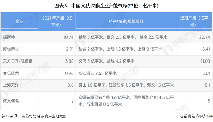 更多本行业研究分析详见前瞻产业研究院《中国光伏胶膜(光伏封装胶膜)行业市场前瞻与投资战略规划分析报告》,同时前瞻产业研究院还提供产业大数据、产业研究、产业规划、园区规划、产业招商、产业图谱、产业链咨询、技术咨询、IPO募投可研、IPO业务与技术撰写、IPO工作底稿咨询等解决方案。