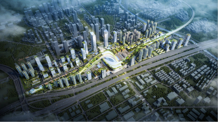 西丽综合交通枢纽概念设计及主体设计方案“共赢的纽带”。(图片来源:中铁第四勘察设计院集团/深圳市建筑设计研究总院/深圳市城市交通规划设计研究中心/株式会社日建设计)