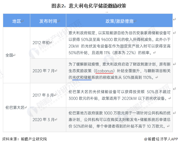 2、意大利电化学储能激励政策-财政补贴储能行业发展