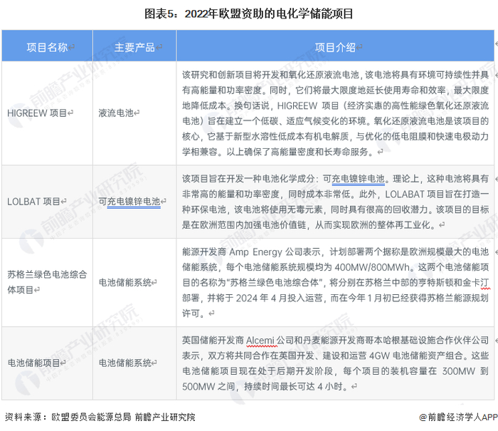 欧盟资助的电化学储能项目用于解决存储难题,以促进欧洲的能源转型。具体的项目投资规划如下: