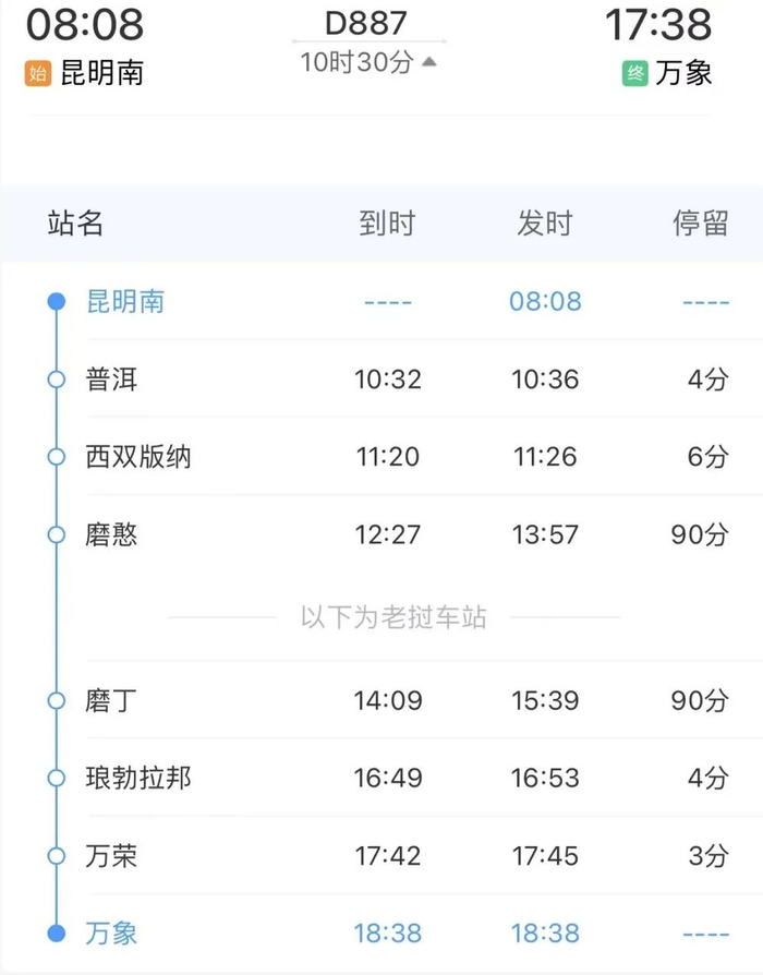 昆明南至万象D887次