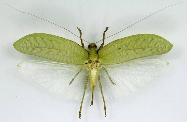 之后,关于巨拟叶螽的讨论逐渐热烈起来。记者梳理发现,巨拟叶螽体型硕大,翅展可达25厘米,是我国现存最大的螽斯,身体最长可达11.2厘米,通体呈浅黄绿色或嫩绿色。这是一种温顺的大型素食性螽斯,喜欢食用桑科植物的叶子。