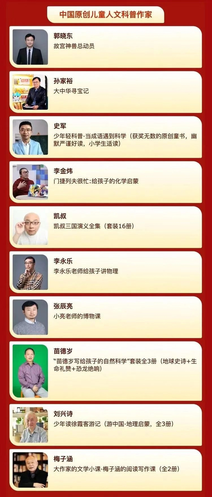 中国原创儿童人文科普作家榜