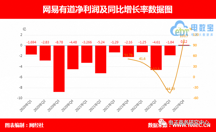 网易有道2022年净亏损7.2亿元,而2021年净亏损8.95亿元,同比亏损缩窄19.49%。。值得注意的是,2022年第四季度,网易有道实现了单季度正向盈利。