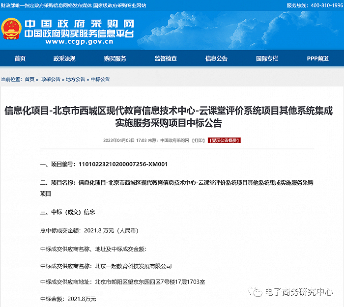 2021年末,一起教育科技宣布押宝SaaS服务,全面转型成为一家中国基础教育数字化转型升级的SaaS服务商。4月3日,北京市西城区现代教育信息技术中心云课堂评价系统项目发布中标通知。一起教育科技受到北京市西城区教委认可成功中标,项目中标金额为2021.8万元。此次项目中标,标志着一起教育科技的智慧纸笔、数字化评价体系在助力教育数字化转型方面得到了广泛的认可。