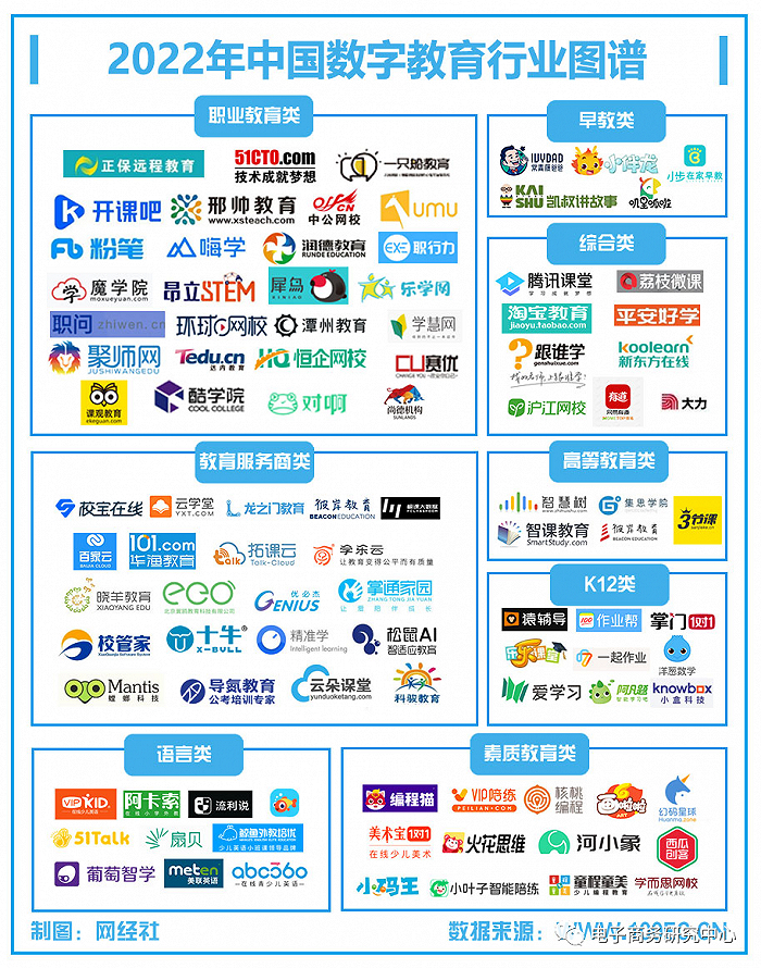 (1)综合类:腾讯课堂、淘宝教育、高途在线、荔枝微课、网易有道、平安好学、大力教育、掌门智能等。