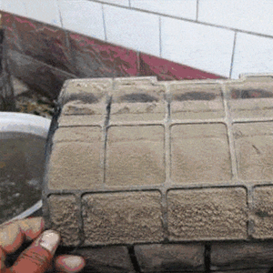 第四步:散热片的清洁剂也差不多溶解后用抹布轻轻擦干净印迹,同时用清水冲洗干净过滤网,晾干后装回空调,再装好空调盖。
