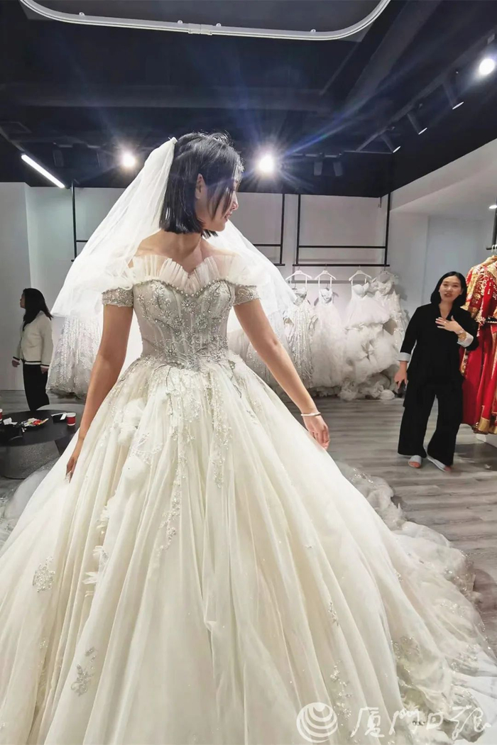 在位于观日西路附近的一家婚纱店内,试婚纱预约从早上排到了傍晚,前来的客人络绎不绝,试衣间一直满员状态。工作人员许小姐告诉记者,今年的订单量明显增加,往年到店试婚纱的人主要集中在周末,但最近工作日的客人也多了很多。