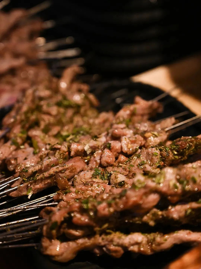 店中所用羊肉全部精选自羊身上最好的肚绷,当天现杀的小山羊绝对新鲜,烤出来不腥不膻,一把盐调味足矣,吃的就是原汁原味。