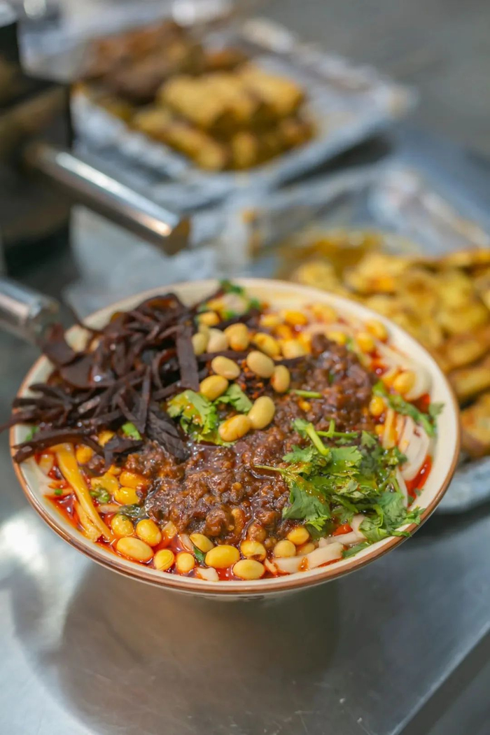 店里最有特色的就是手擀面,红红的辣油肉酱非常有辨识度!其味道是付姐一点点琢磨出来的。别人家能把手擀面样子模仿个大概,但只能得其形无法得其髓,只要吃过,一入口必然能吃出差别。