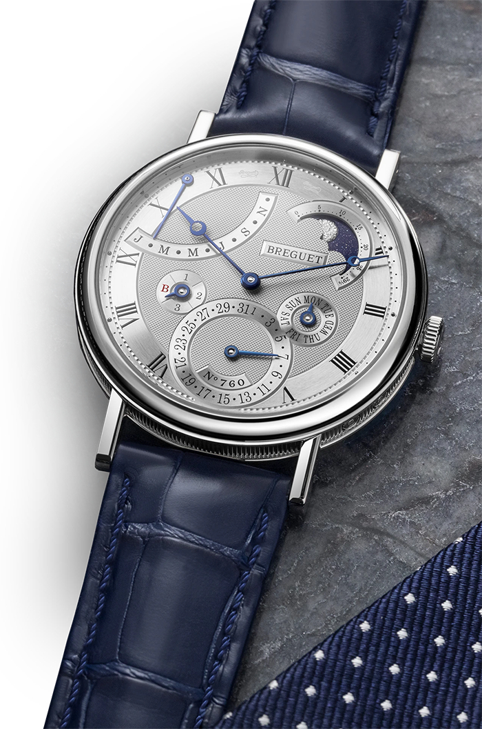 作为经典复杂功能,万年历能够显示准确日期,并且自动识别大小月份和平闰年。为实现该功能,机芯需要拥有长达四年的机械“记忆”。宝玑的另一大设计主旨在于打造轻巧舒适的腕表,因此品牌特意选择额外配备日历机制的502机芯。