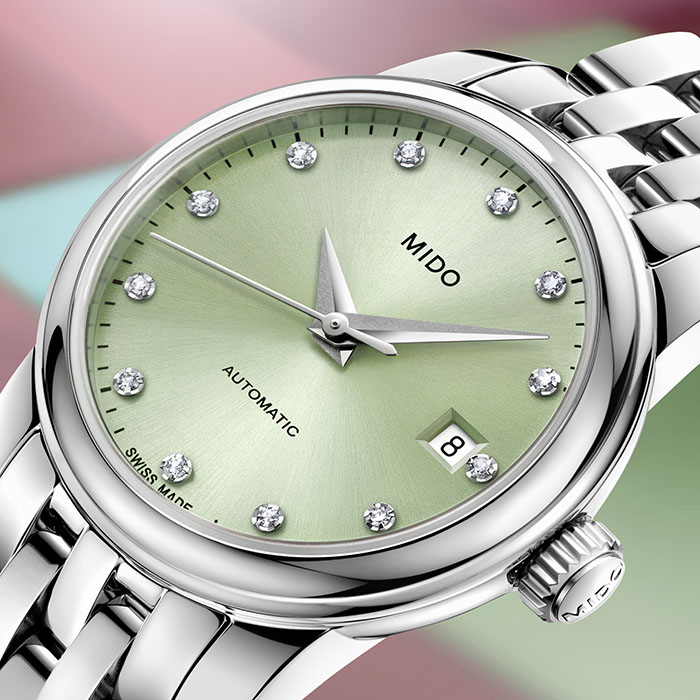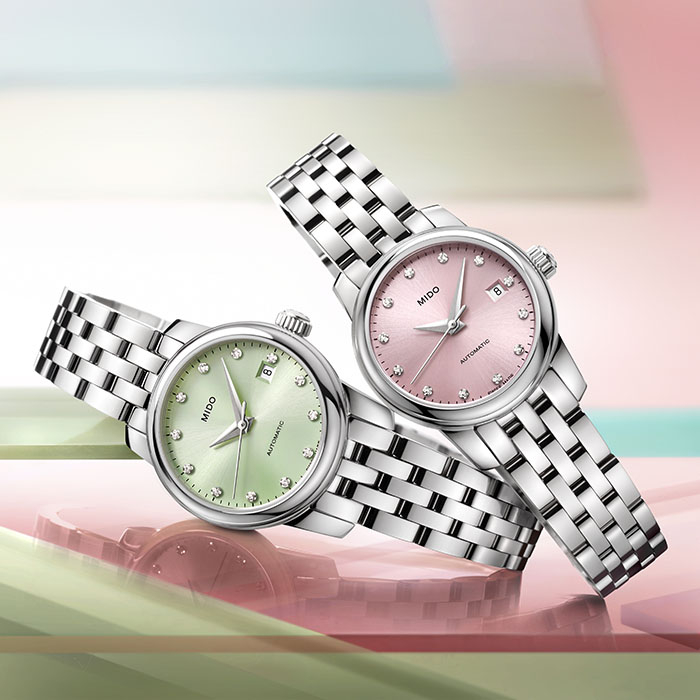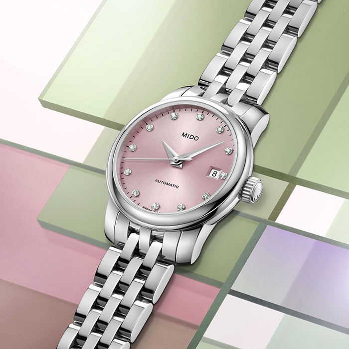 全新贝伦赛丽系列迷你小表盘腕表具有清雅脱俗的配色。清新粉或海洋绿如同春日的花与叶,丝光打磨的太阳纹表盘直径仅25毫米,表壳采用丝光打磨不锈钢打造,小巧精致,贴合手腕。