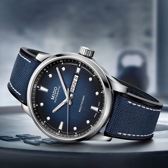 MULTIFORT舵手系列千禧腕表传承舵手系列的典型特征,表盘饰有垂直丝光打磨纹,呼应舵手系列的经典日内瓦波纹元素,再配以由蓝至黑或由绿至黑的渐变色调。其指针和圆形大刻度经Super-LumiNova®夜光涂层处理,形成鲜明的撞色设计。腕表搭载尖端科技成果——Nivachron™游丝,动能存储可达80小时。