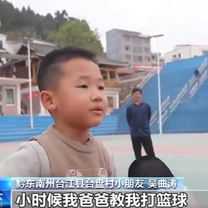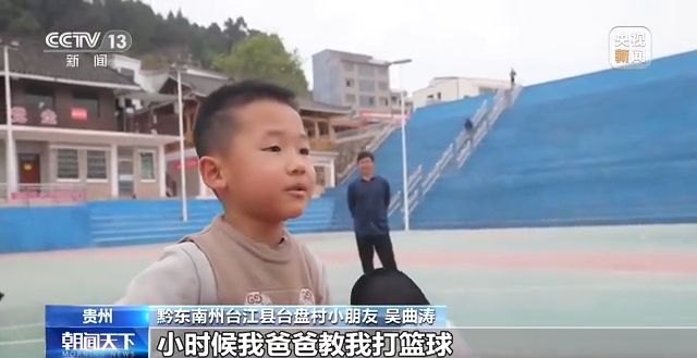 黔东南州台江县台盘村小朋友吴曲涛:小时候我爸爸教我打篮球。