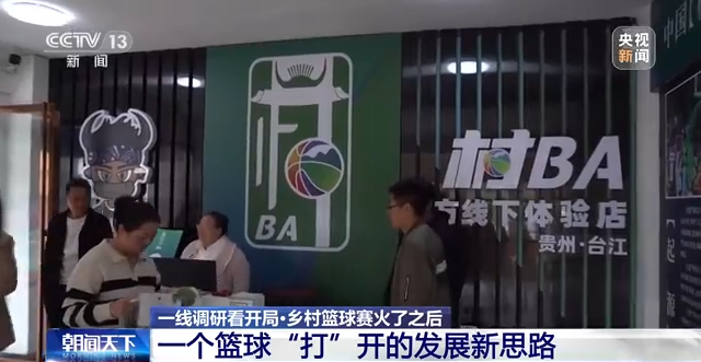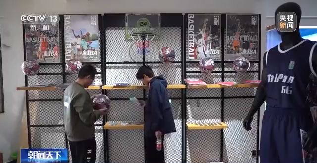 总台央视记者李超:我手上这个篮球就是“村BA”线下体验店中卖得最好的单品之一,有别于传统篮球,我们可以看到整个篮球是采用了苗族的蜡染这样一个工艺,可以看到整个造型是一个牛角这样的造型。除了像蜡染这样的工艺,在这个体验店当中像这样的篮球服也是采用了苗族刺绣的工艺,那“民族+体育”的元素,也成为不少消费者前来打卡的重要原因。