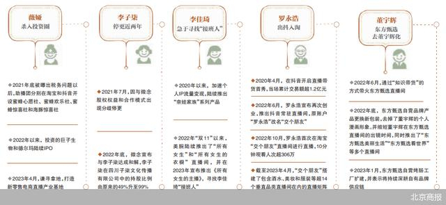 但一个明显的趋势是,曾经的超级头部主播们正在直播间外寻找更多身份。例如李佳琦前往浙江传媒学院为《所有女生的主播》节目录制选新主播,并将一部分精力花在品牌产品共创上。而“交个朋友”和“东方甄选”直播间的罗永浩、董宇辉也逐渐减少了露面频次。