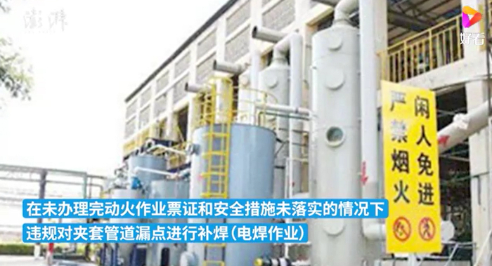 2021年12月28日,山西省临汾市临汾染化集团有限公司发生爆炸事故,造成4人死亡。经初步调查分析,事故的直接原因是:二硝车间硝化分离器至水洗锅间的放料蒸汽夹套管道有漏点,在未办理完动火作业票证和安全措施未落实的情况下,违规对夹套管道漏点进行补焊(电焊作业),导致放料管道内的2,4-二硝基氯苯受热分解爆炸。