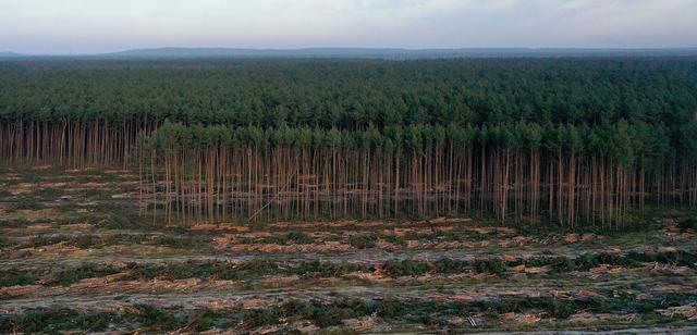 当地时间2020年12月20日,德国Gruenheide,航拍被砍伐的树木。