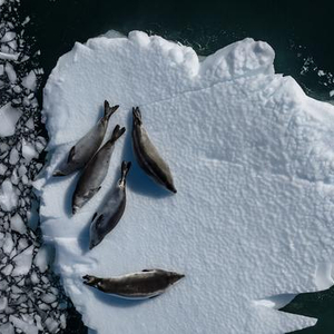 当地时间2023年2月24日,在南极洲马蹄岛,浮冰上的海豹。