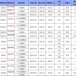 3月份,UBS AG集中扫货,出现在了立新能源、东信和平、东港股份、云图控股、天邑股份、博硕科技、白云机场、淳中科技、舒华体育、天原股份、佳力图、崇达技术、京泉华 、苏州龙杰、协创数据、泰禾智能、光迅科技、华自科技、达实智能等30多家公司中。