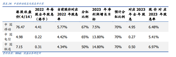公司发布2022年年报。3月23日,中国移动发布2022年年报,公司2022年收入9373亿元,同比增长10.5%。公司归母净利润为1254.6亿元,同比增长8%,每股盈利为5.88元。董事会建议2022年全年派息率为67%,2022年全年股息为每股4.41港元,同比增长8.6%。