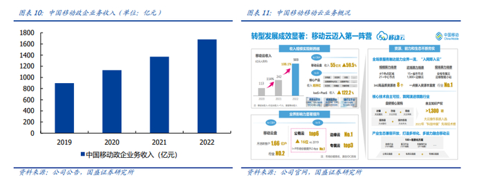 公司移动用户数和5G套餐用户数均居全球第一,截止2022年,移动用户数达到9.75亿户,5G套餐客户数达到6.14亿,移动用户净增规模创三年新高。个人市场的庞大用户规模为公司快速拓展其他市场、优化收入结构、实现数智化转型提供了坚实保障。