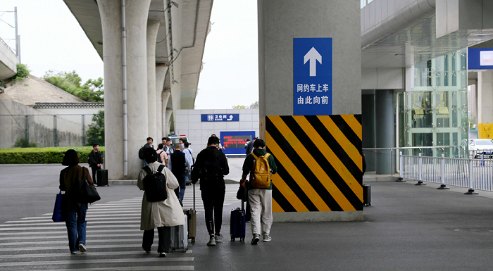 网约车在到达厅东边P4停车场,从到达大厅的志愿服务台向东前行,一路按指示牌指引即可到达。在P4停车场专门设置了网约车上车点,停车位461个。