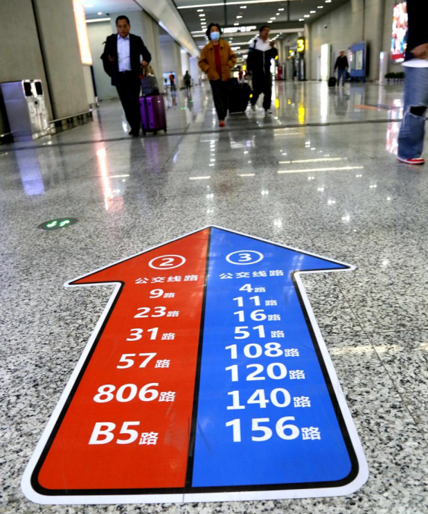 公交换乘点有详细的线路指示牌,旅客可以根据自己的目的地选择合适的车次。如果有不清楚的也可以询问设在公交乘车点的志愿服务台。
