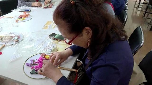 手指操体验结束后,工作人员还和社区老人一起制作了鲜花团扇,并交流了日常的健康保养小知识。