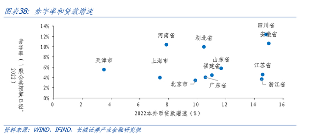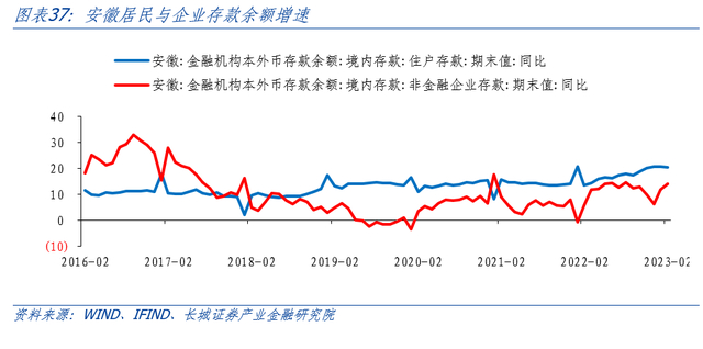 安徽省的贷款主力正在从居民贷款过渡到企业贷款。我们将贷款拆解为企业和居民两个角度,2016年-2019年,安徽省居民贷款增速远远高于企业贷款增速,虽然在2017年以后增速有持续下降趋势,但居民贷款仍然是贷款的主要拉动项。从2019末开始,全国受到新冠疫情影响,该因素加速居民贷款增速继续持续下滑,而企业贷款增速在2020年初只是上涨放缓。从2022年以来,安徽企业贷款增速稳步上涨,并反超住户贷款增速,且差距越来越大,逐步取代住户贷款成为信贷扩张主力。