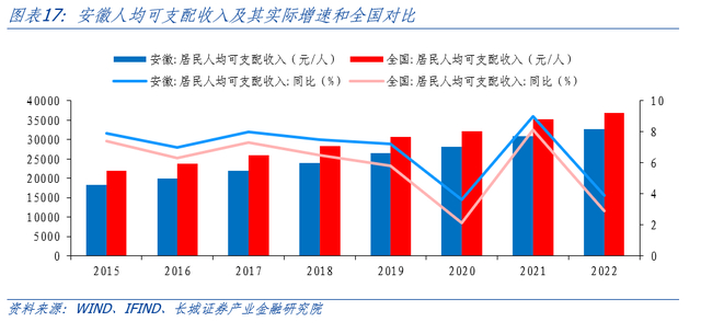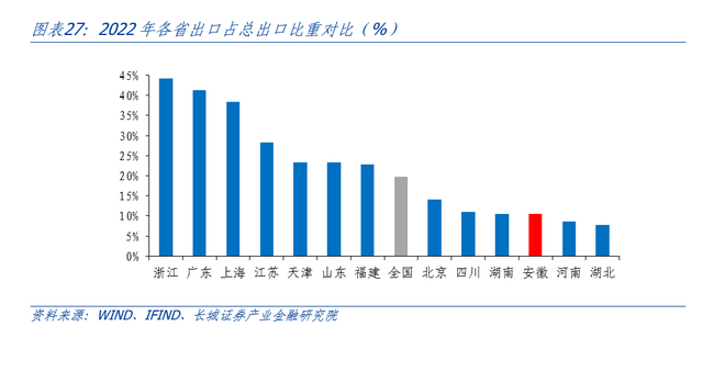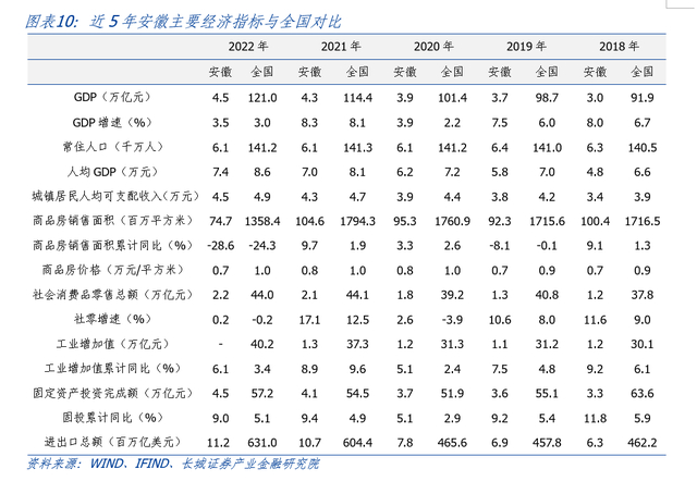 安徽省作为长三角区域重要省份,近十年经济增速高于全国,实现了从“总量居中、人均靠后”向“总量靠前、人均居中”的跨越式发展。为实现新旧动能转换,安徽近年来加快战略新兴产业投资,政府在引入市场资本方面走在全国前列,从京东方到蔚来,合肥更是成为“风投之城”。在优惠政策和资本助力下,安徽新能源汽车等产业优势渐显,进一步推动出口增长,伴随着近年消费潜力释放,全省经济发展迈上新台阶。