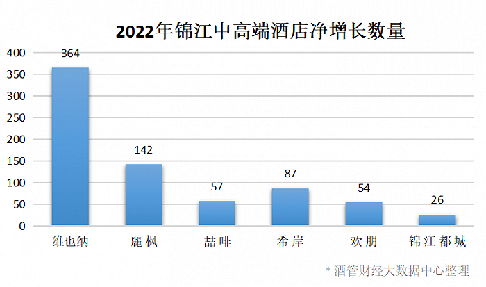 比如锦江。在2022 年净增中高端酒店 907 家,净增经济型酒店 40 家。其中,中高端品牌中的维也纳(国际/智好/维也纳 酒 店 / 三 好 ) / 麗 枫 / 喆 啡 / 希 岸 / 欢 朋 / 锦 江 都 城 分 别 净 开 店364/142/57/87/54/26 家;经济型品牌锦江之星净关 23 家,7天净关 72 家,白玉兰净开55家。