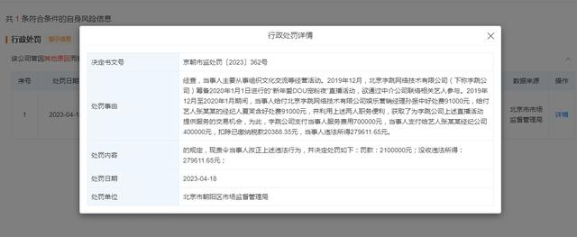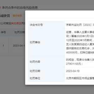 据天眼查APP显示,近日,北京速倍文化传播有限公司因违反《中华人民共和国反不正当竞争法》被北京市朝阳区市场监督管理局罚款210万元。