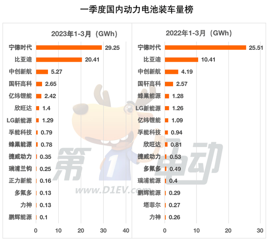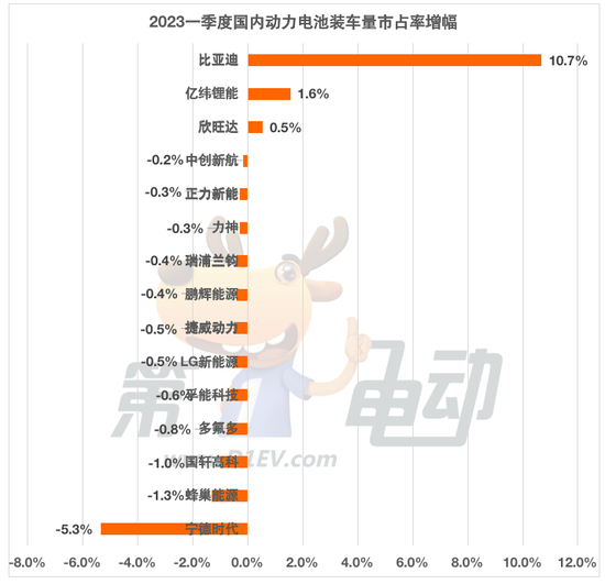 Q1国内动力电池榜:比亚迪市占率狂飙10.7%,宁德时代大降5.3%