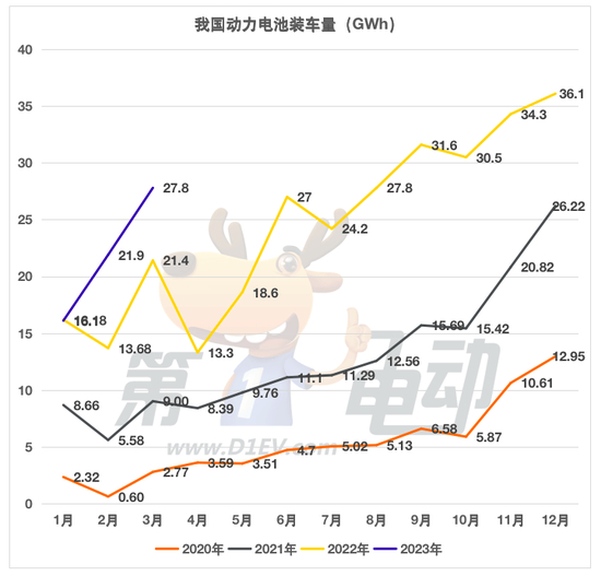 据中国汽车动力电池产业创新联盟最新数据,今年一季度我国动力电池累计装车量65.9GWh,累计同比增长28.4%。其中3月动力电池装车量27.8GWh,同比增长29.7%,环比增长26.7%。