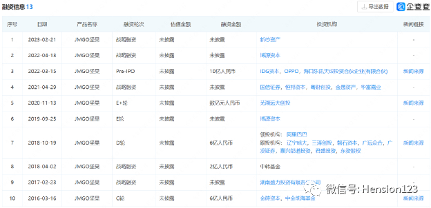 比如,投影仪头部品牌“JMGO坚果”生产企业—深圳市火乐科技发展有限公司,仅在去年三月和四月就收到来自IDG资本,OPPO与博源资本等知名投资方高达超10亿元的融资。2023年2月又接受了新芯资产相关战略融资,截至目前共计有13轮融资。